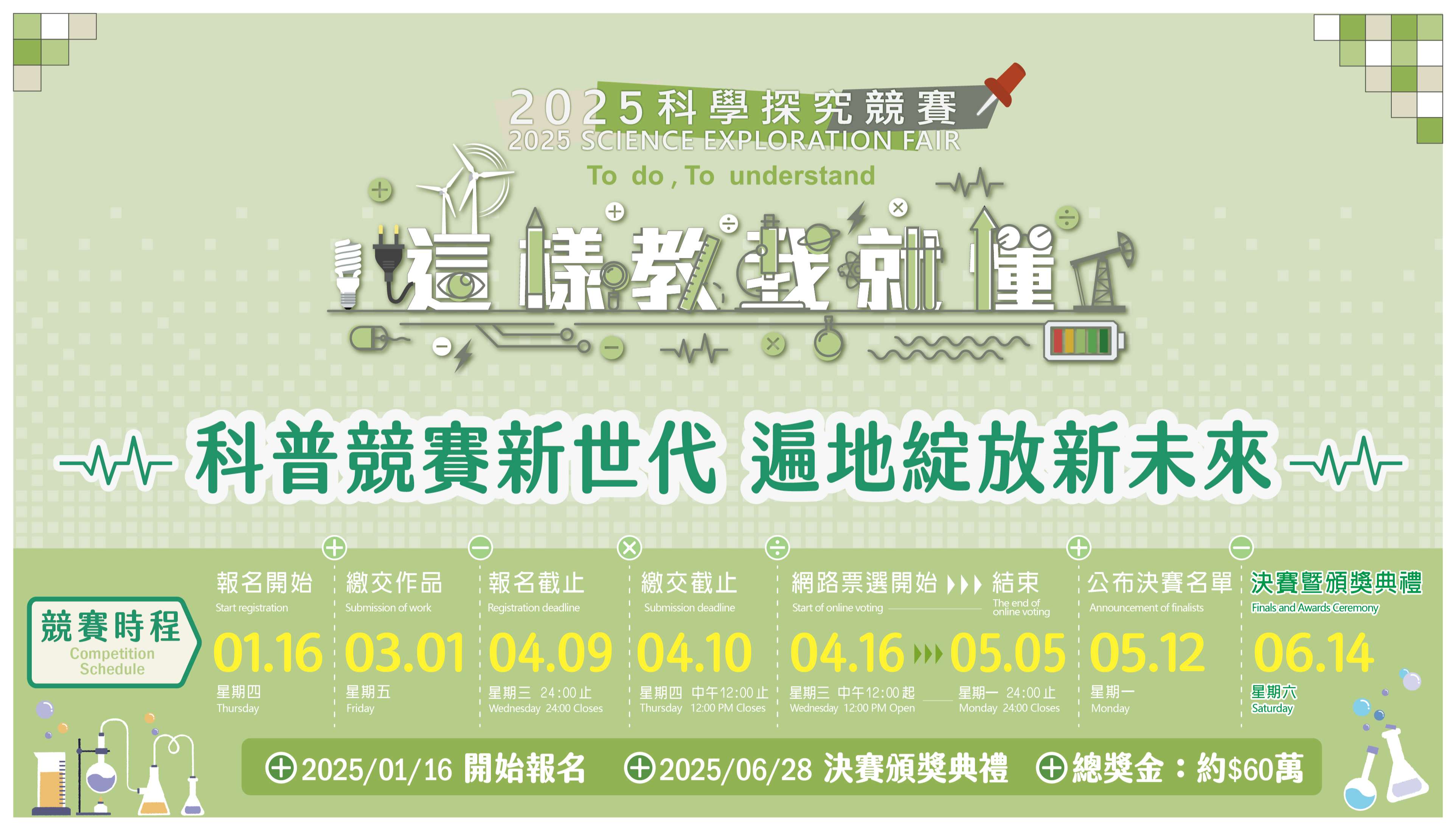 三、檢附競賽文宣海報、時程表及競賽演化歷史圖各1份,詳細 說明請參考官網,網址:http://sciexplore.colife.org. tw/。