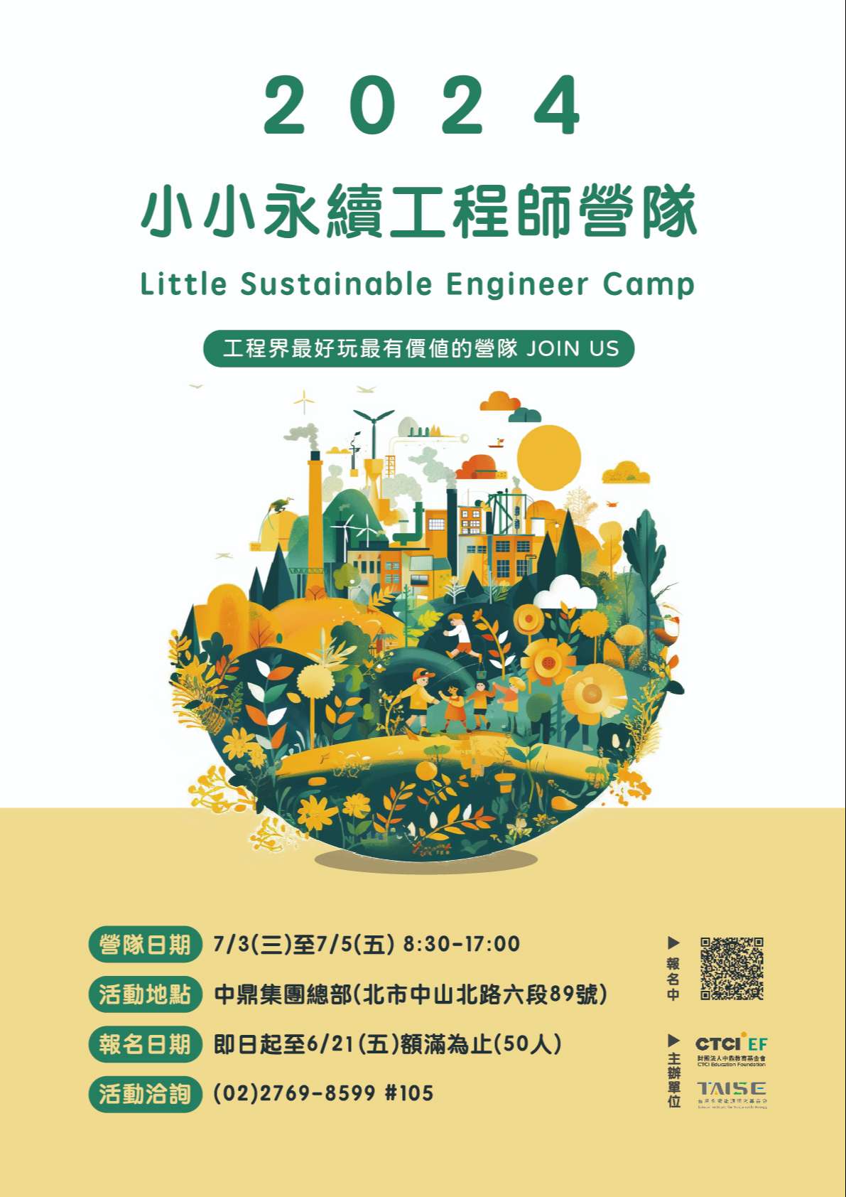 一、聯合國永續發展目標(SDGs)已是全球政府、教育、企業領 域的共通語言,永續發展教育(ESD)與永續發展目標之整合 運用係全球最新趨勢。本會主辦「2024小小永續工程師營 隊」期能提升國小學童在環境永續、工程領域相關的專業 知能,培養其創造力與自主學習力。