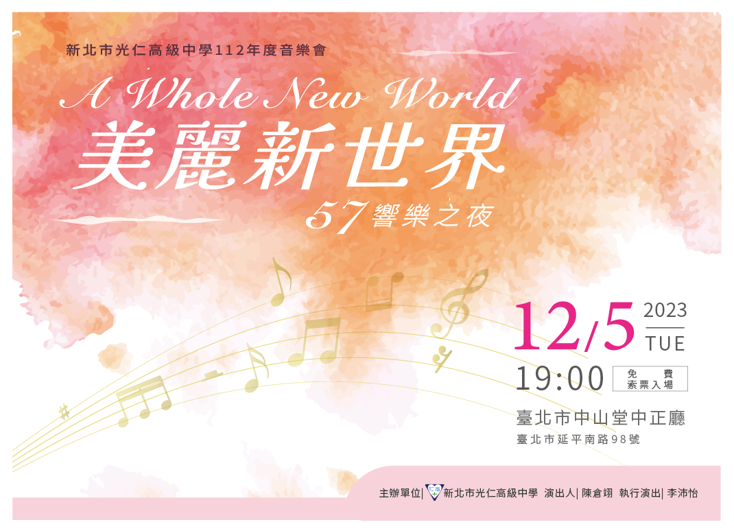 (三)音樂會為免費索票入場,相關索票訊息請洽該校音樂班辦公室 (02-29615161分機 150)。