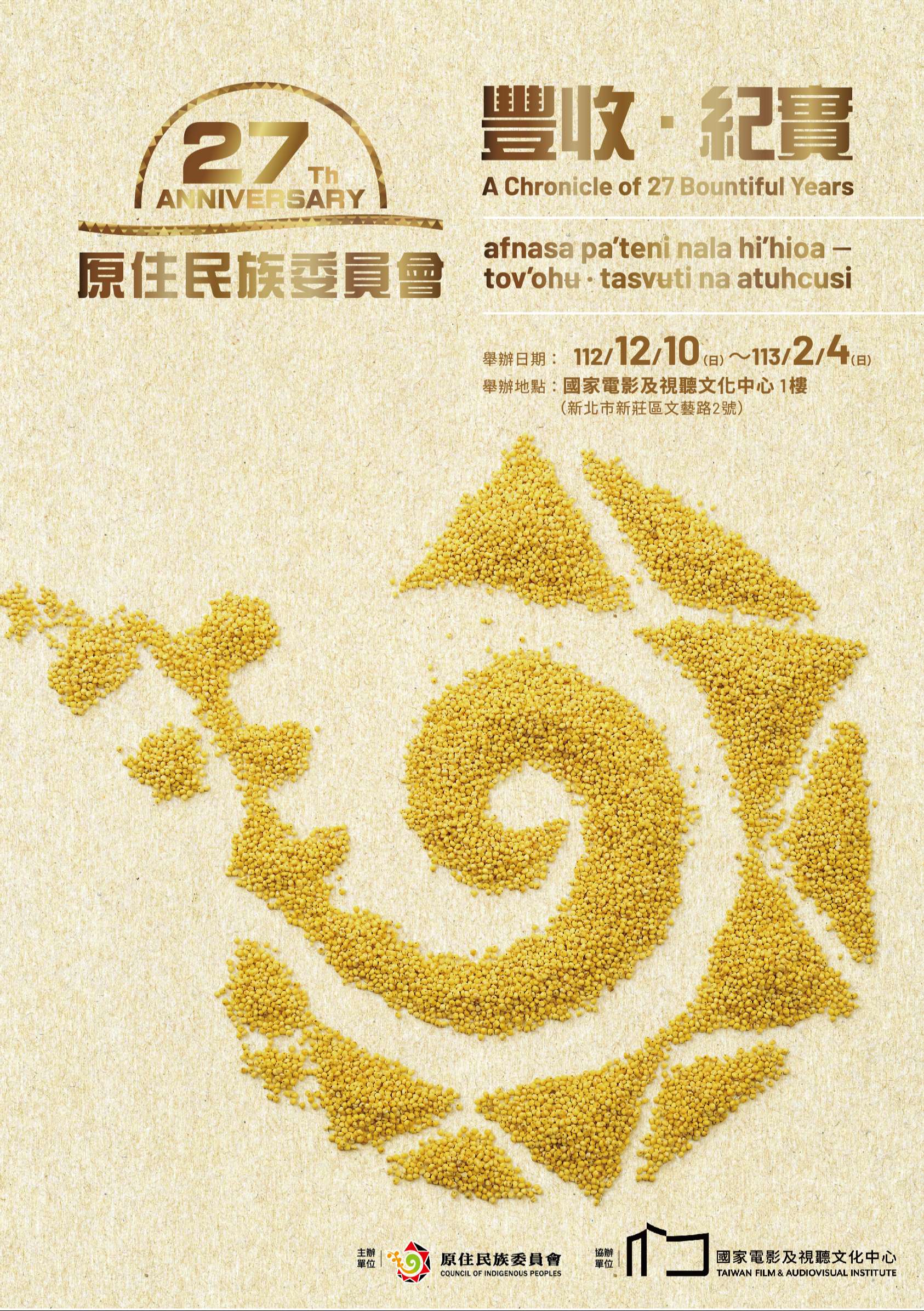 原住民族委員會特辦理「豐收‧紀實-原住民族委員會成立27週年」特展,時間及地點如下: