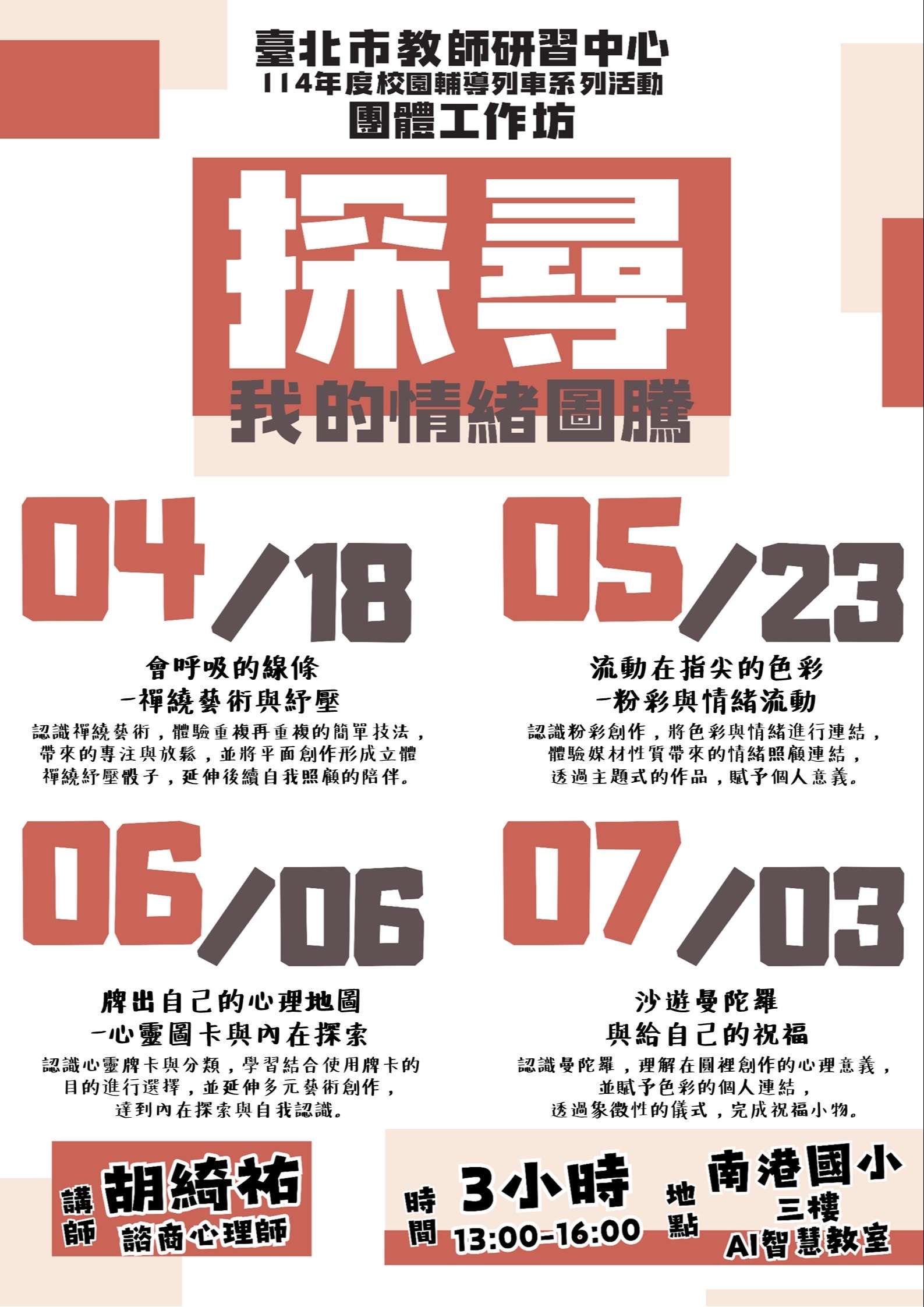 一、依據本市教師研習中心114年2月17日北市師輔字第1446000430號函及本校申辦計畫辦理。