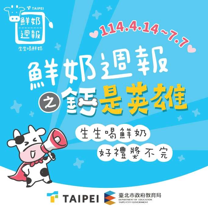 一、為建立本市公私立國小學生良好健康飲食觀念,請學校配 合本市「鮮奶週報-生生喝鮮奶」政策,推動健康教育宣 導,結合學習活動,幫助學生提升乳品營養知識、培養主 動探索相關知識的學習習慣。