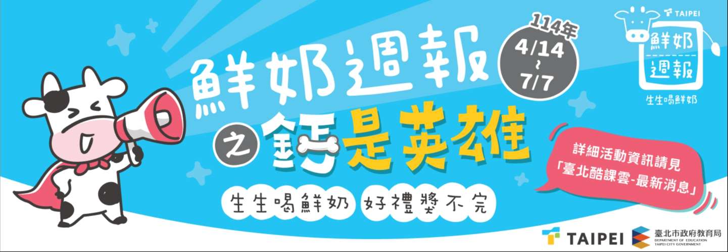 二、請學校協助將乳品營養相關學習內容,融入各年級生活、 健康、綜合活動等課程領域,或依據學校特色發展跨領域 學習活動,強化學習成效,亦可參考「鮮奶週報-生生喝 鮮奶」專頁(https://milk.tp.edu.tw/index.html)「鮮 奶小學堂」內容。