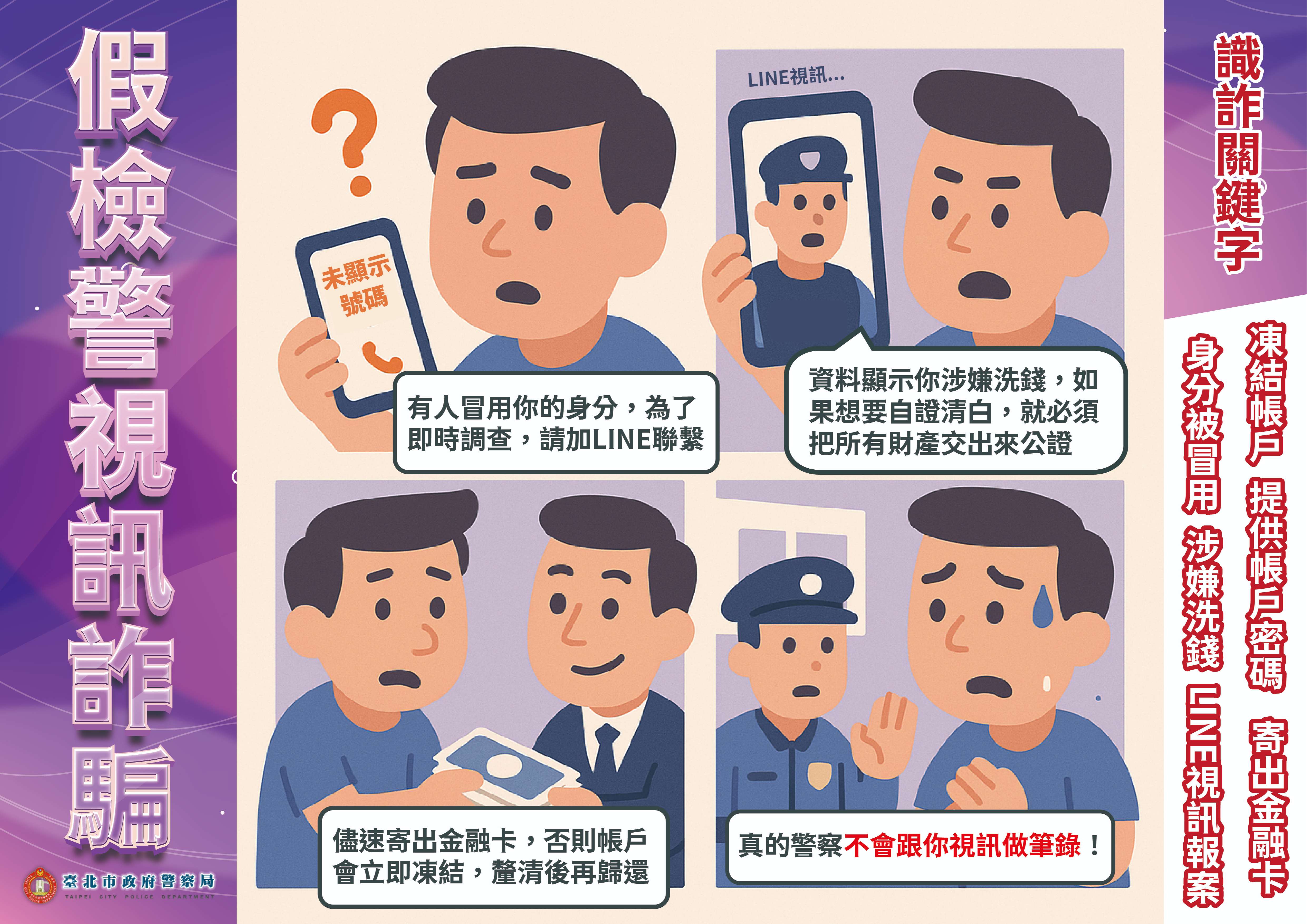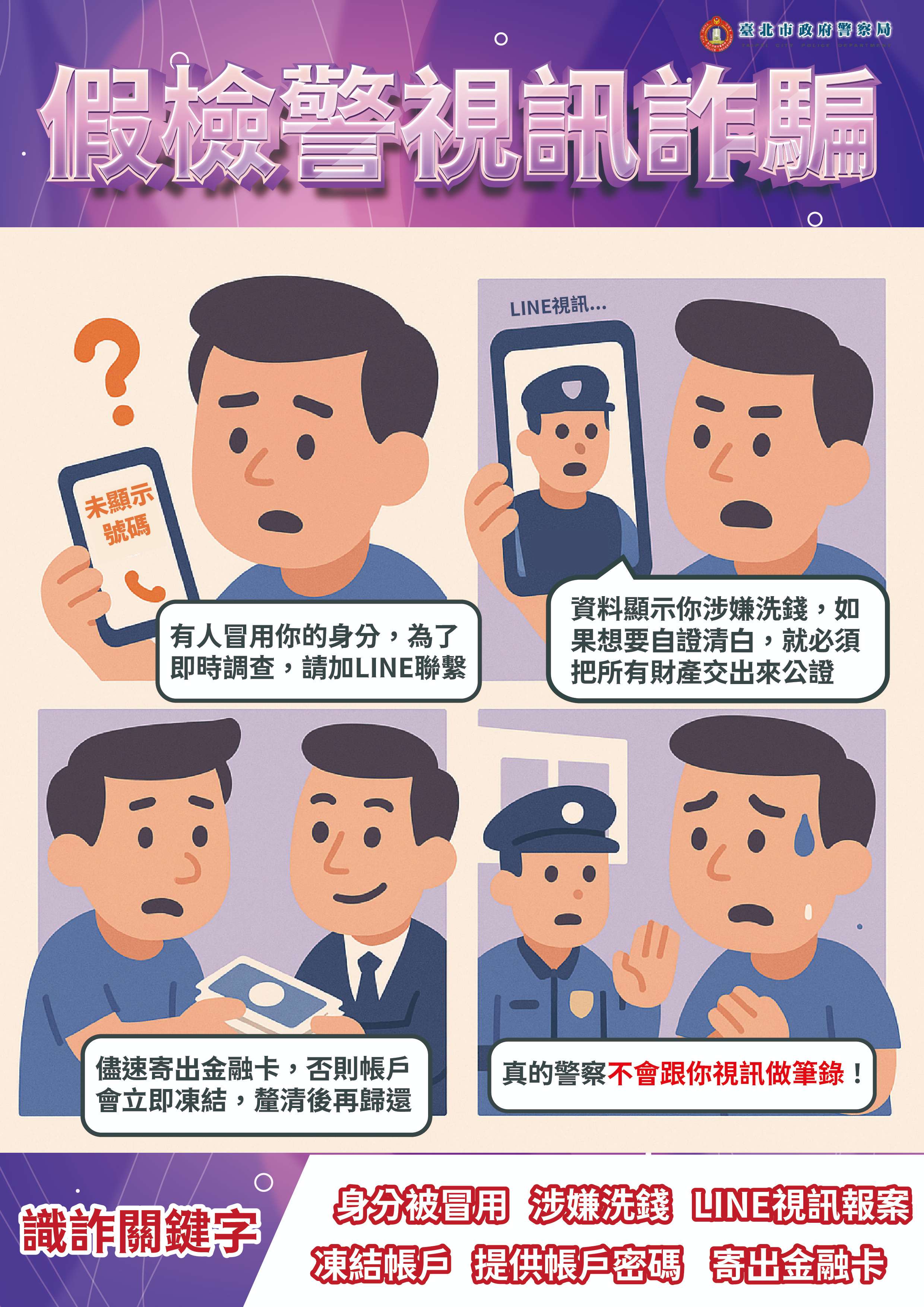 三、近期發現詐騙集團常用「假檢警視訊」、「二次詐騙」等 方式,誘導民眾匯款或轉帳。