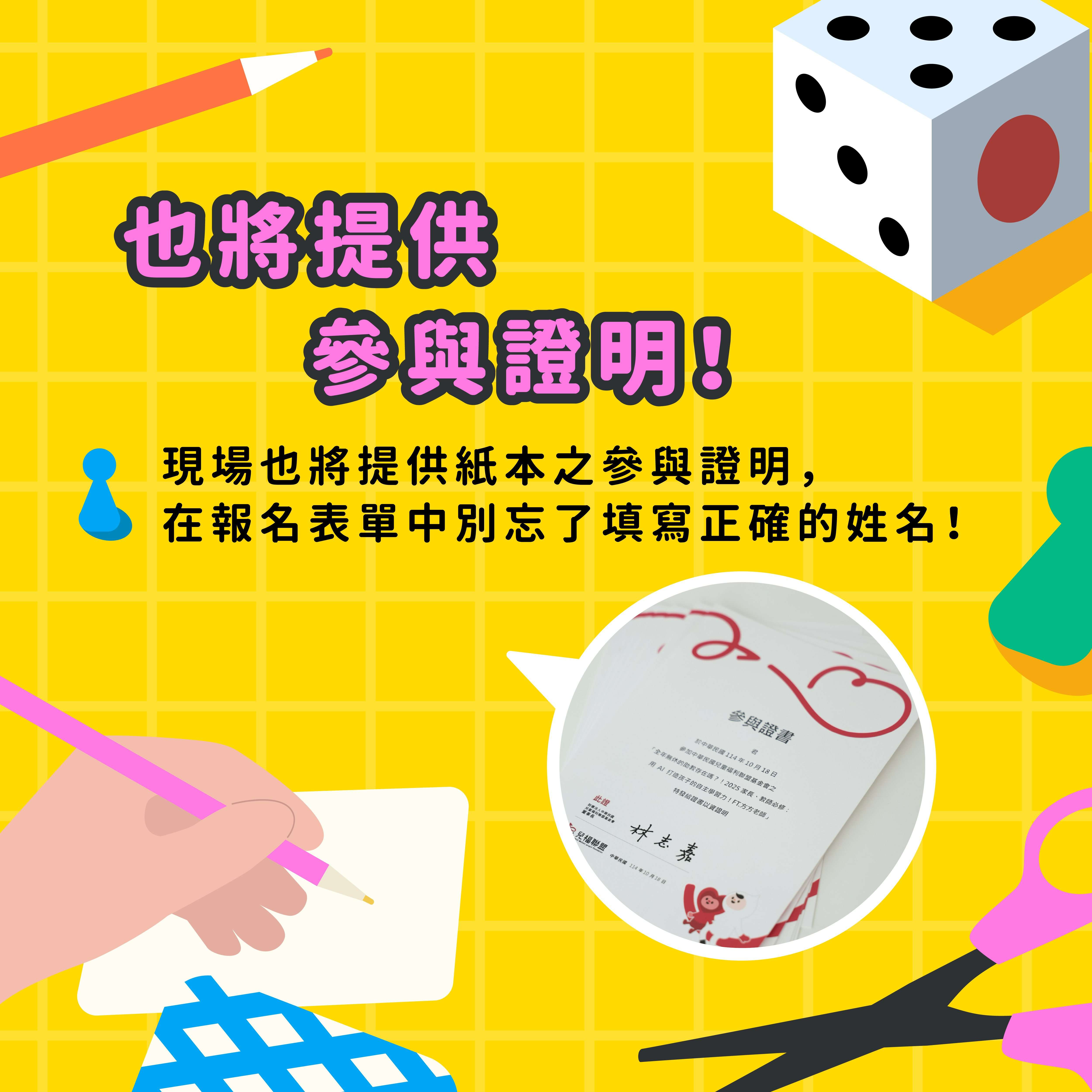 九、注意事項: (一)本工作坊將提供於現場完整參與者紙本之參與證明,敬 請於報名表中填寫正確姓名 (二)工作坊活動包含動手設計實作,並將依照報名者填寫之 意願及實際報名狀況進行分組,敬請於報名表中依照興 趣及需求填寫志願序 (三)活動將進行拍攝與記錄,報名即視為同意授權使用相關 影像與共同創作內容 (四)報名後請儘速完成繳費程序,以保留名額,活動後將開 立電子收據,如需收據檔案填寫報名資料時敬請完整提 供可用於收信之聯絡方式 本會深盼透過本次工作坊,協 助教師探索多元教學策略,推動永續教育深植校園,敬 請貴校惠予協助公告並轉知所屬師長,至表感謝。