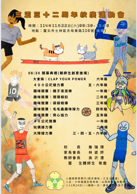 11/22(六),我們即將迎來 三玉國小 32 週年校慶運動會!